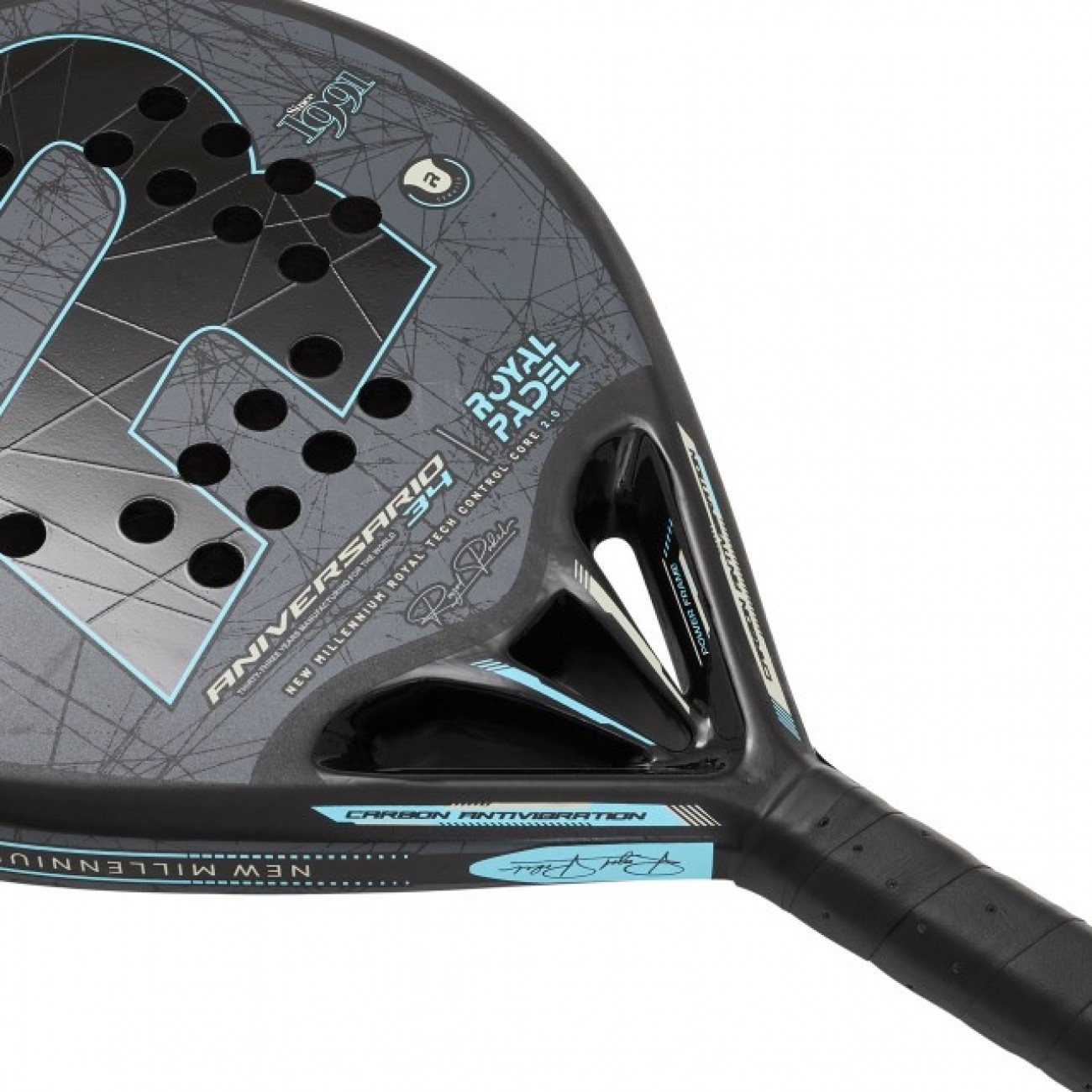Despues de algunos anos evolucionando las tecnologias que incorporamos a esta pala, la nueva 34 Aniversario esta hecha con el tubular Fiber Tech de Royal Padel y reforzada con carbono.