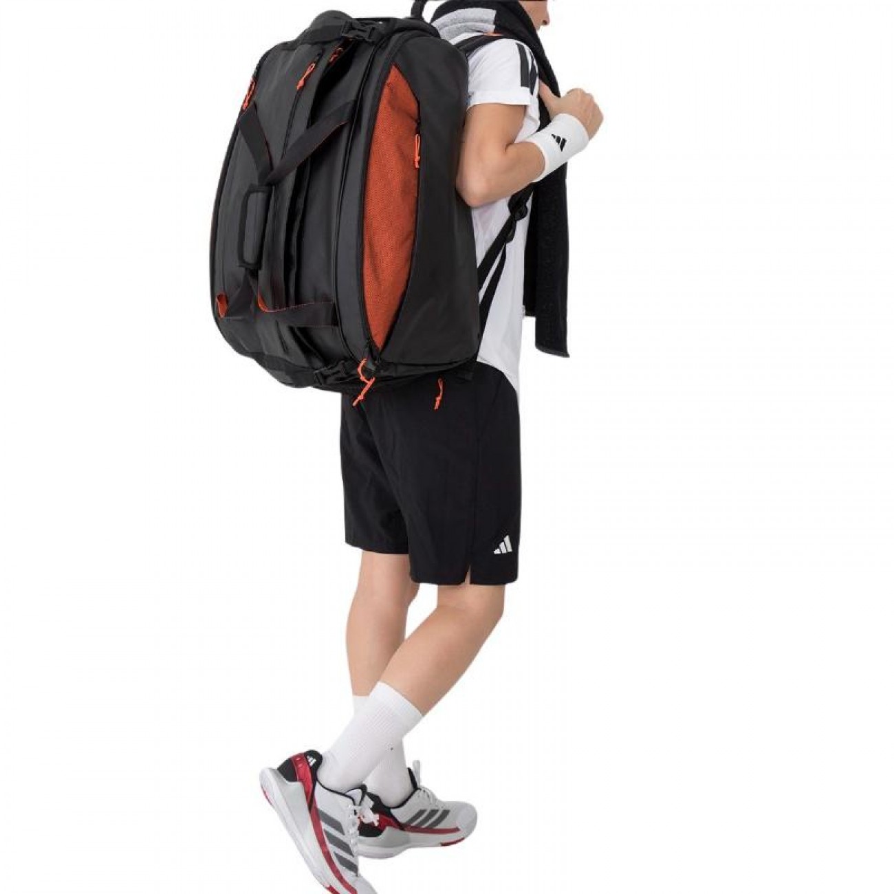 El Paletero Adidas Multigame Negro Naranja 3.4 es una opcion ideal para los jugadores de padel que buscan un accesorio espacioso, practico y resistente para transportar todo su equipamiento.