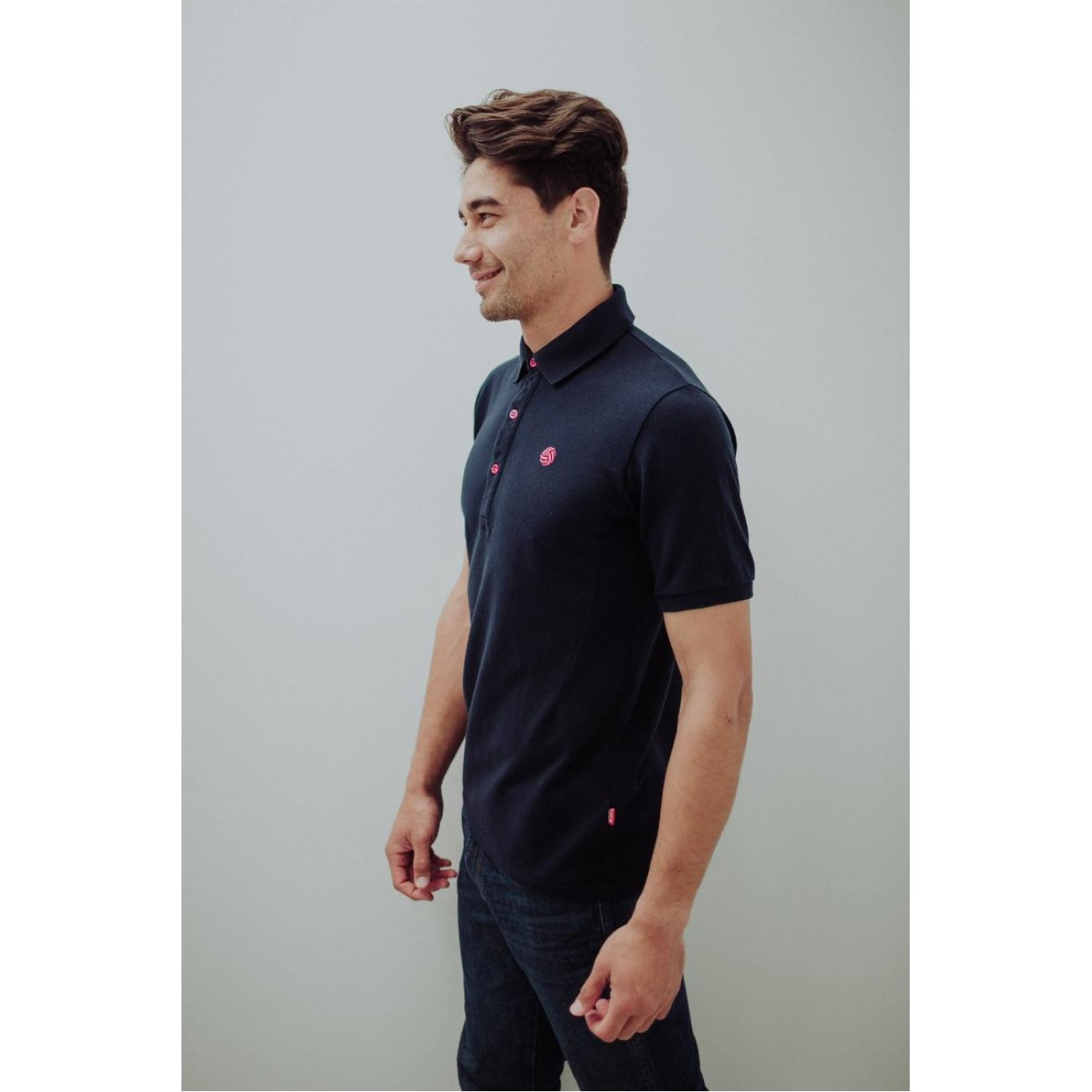 Logo bordado en rosa fucsia.