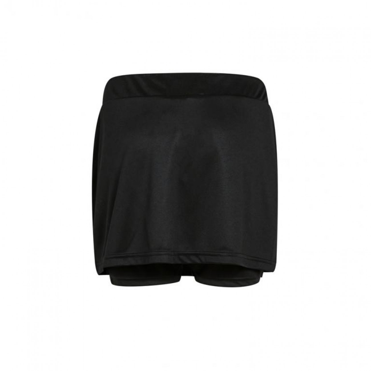 Falda de deporte para mujer en color negra, fabricada en tejido resistente y ligero. Esta falda tiene un pantalon corto incorporado que proporciona mayor sujecion.